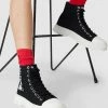 Die High Top Sneaker von REVIEW sind aus robustem Material gefertigt. Sie kommen mit abgerundeter Spitze, Schnürverschluss, Perforierungen und Kontrastbesatz. Bitte beachten: Das Modell fällt eine halbe Nummer größer aus.
