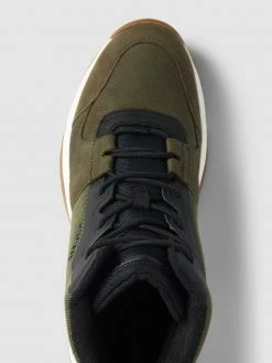 Die High Top Sneaker von Tommy Hilfiger sind aus einem Leder-Baumwoll-Mix gefertigt. Sie zeigen sich im Colour-Blocking-Design mit Steppnähten und Schnürverschluss.