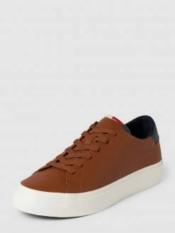 Die Sneaker von Tommy Hilfiger sind aus echtem Leder gefertigt. Sie zeigen sich mit Kontrastbesatz und Schnürverschluss sowie Label-Prägung und strukturierter Sohle.